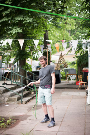 Ich hatte die Idee einen Ort für Vieles und Viele gemeinsam mit den Menschen vor Ort zu entwickeln. Warum nicht einfach einen Marktplatz schaffen? Nach meinem Architekturstudium und der Gründung eines Handwerksbetriebes hatte ich hierfür viele Werkzeuge im Gepäck. Aber ohne das Vertrauen der Gemeinde und den Ideen der Nachbarn und Nachbarinnen, wäre so ein Ort nie entstanden. Heute freue ich mich zu sehen, wie viele Menschen hier täglich zusammenkommen, entspannen, gesellig sind oder kreativ werden!"